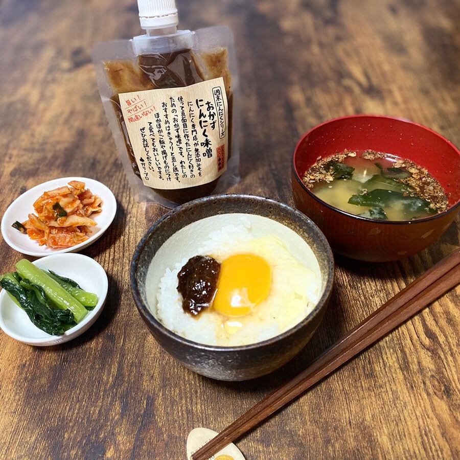青森産のにんにくをたっぷり使用したごはんがススむおかず味噌はホカホカごはんにはもちろんのこと、キュウリやふろふき大根、肉やトーストにまで、相性ぴったり!