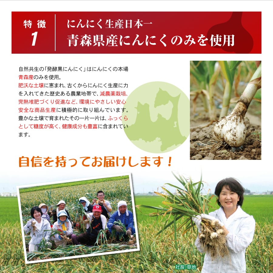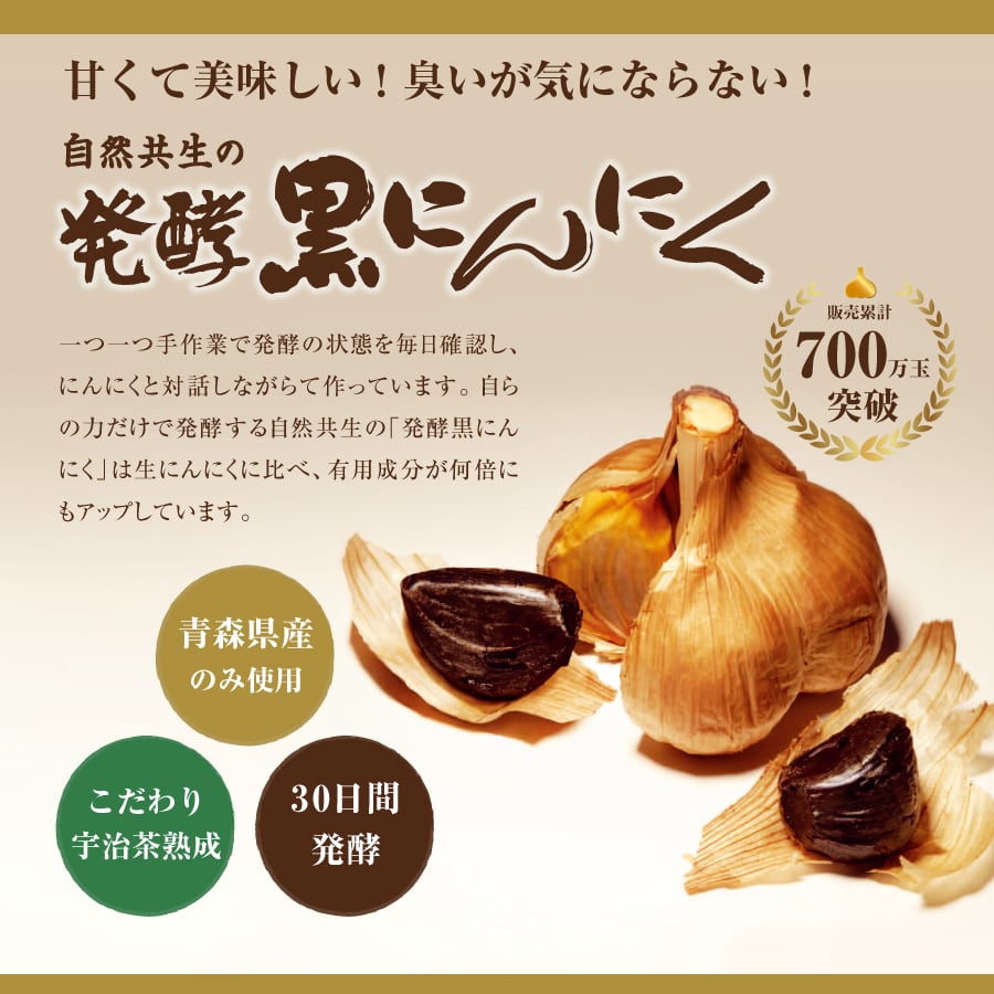 自然共生の発酵黒にんにくは果物のような食感で、栄養がとれる画期的なにんにくです。皮が剥きやすい。食べごたえのある大粒。